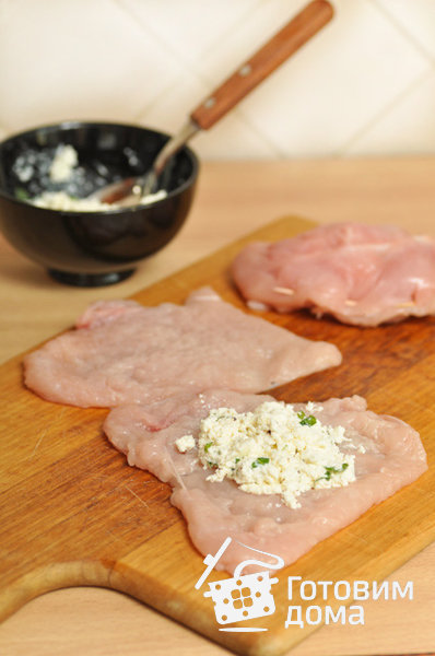 "Кармашки" из куриной грудки с сыром "Фета" и томатным соусом