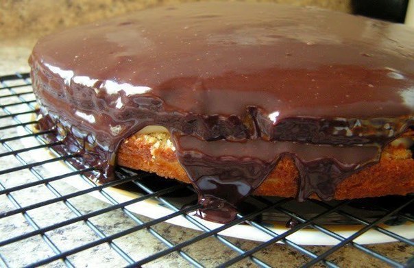 8. Для глазури нагреть сливки и смешать их с растопленным шоколадом. Полить сверху торт.