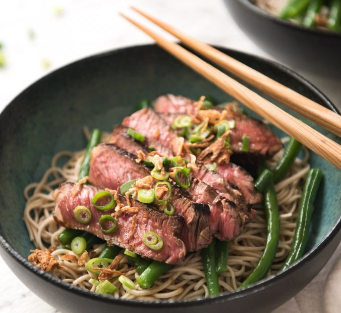 Гречневая лапша (соба) с говядиной и стручковой фасолью