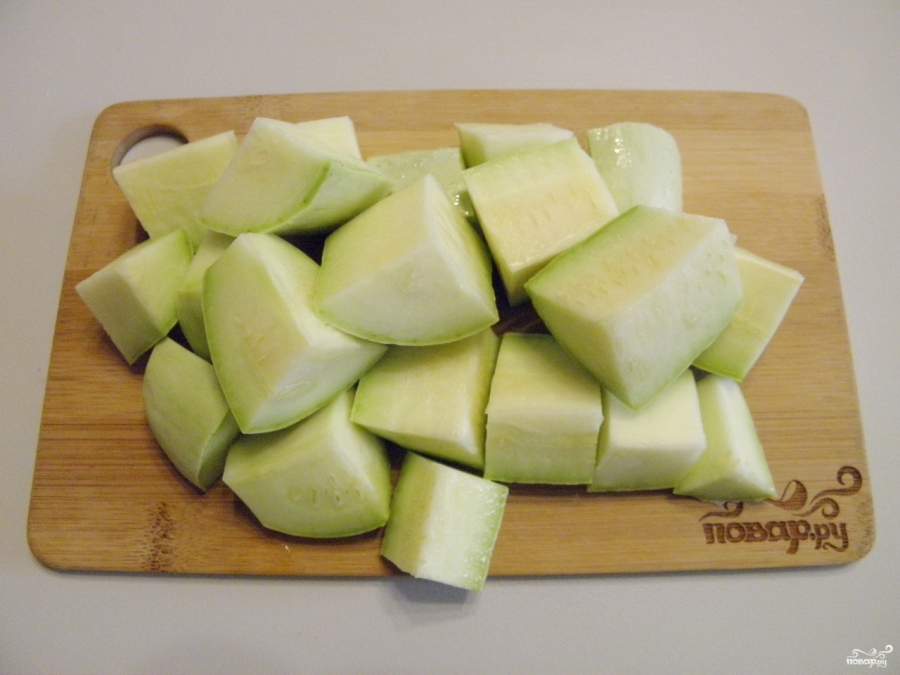 Вымытые кабачки порежьте крупно, чтобы удобно было измельчить в мясорубке или измельчителе.
