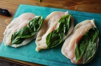“Ужин за 30 минут”. За счет ломтиков сочного помидора, которыми нафарщированы грудки, мясо получается сочным и очень вкусным. А базилик придает особенный аромат этому блюду.