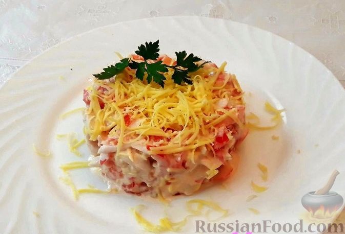 Салат "Римский" готовится с обжаренной говядиной, яичными блинчиками, свежими огурцами и орехами. Прекрасно подойдет этот мясной салат для новогоднего стола. |