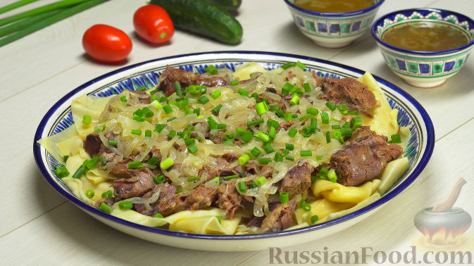 Бешбармак в переводе с тюркских языков - «пять пальцев», так сложилось, что это блюдо едят руками. На тонкое нежное тесто выкладывают кусочки томленой в бульоне баранины, приправленной специями и луком. |