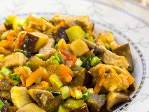 Свинина, тушенная с овощами и грибами
