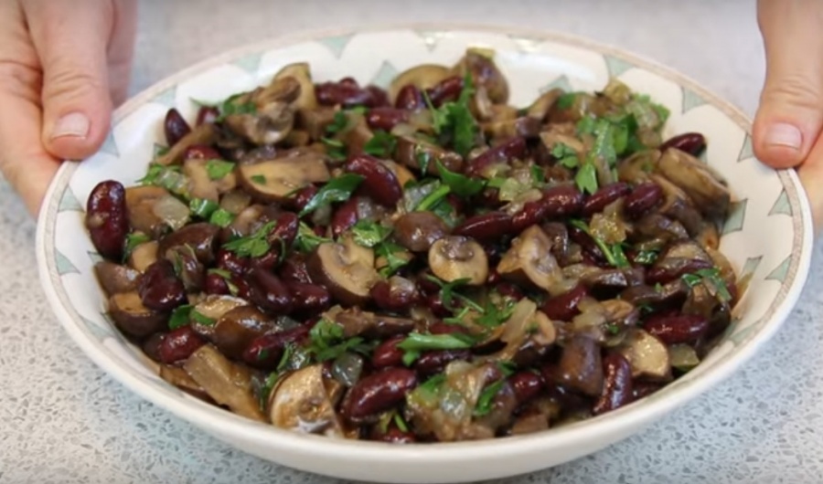 Постный салат с грибами и фасолью