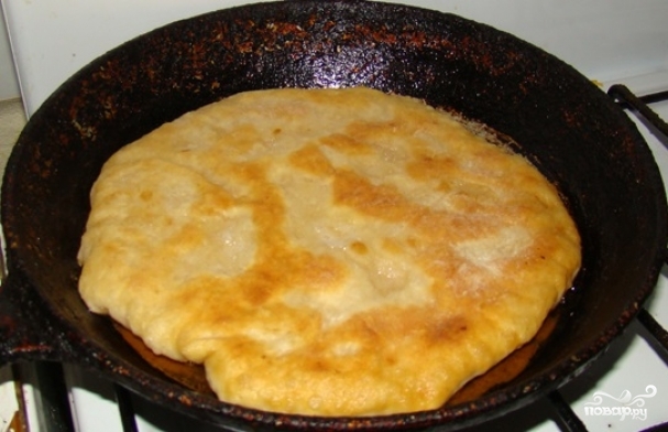 8. Когда с двух сторон образовалась аппетитная корочка, плачинда с тыквой в домашних условиях готова. Переложите ее на тарелку, дайте немного остыть и можете подавать к столу.