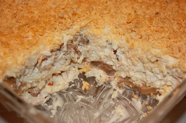 1/2 куриного филе,отвар.и порез кубиками,майонез
