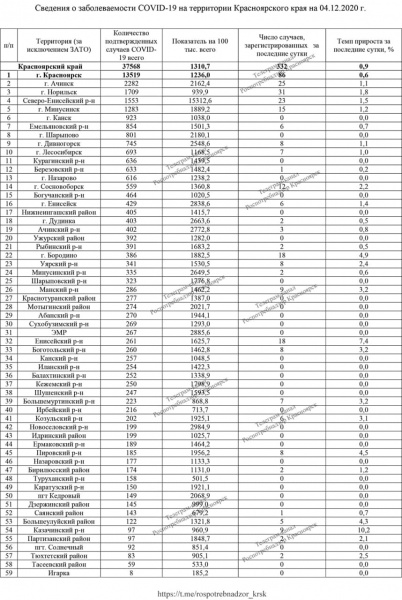 Умерших в Зеленогорске за сутки не зафиксировано. Железногорск эти данные не публикует. По данным оперштаба края, на остальной территории погиб 21 человек.
