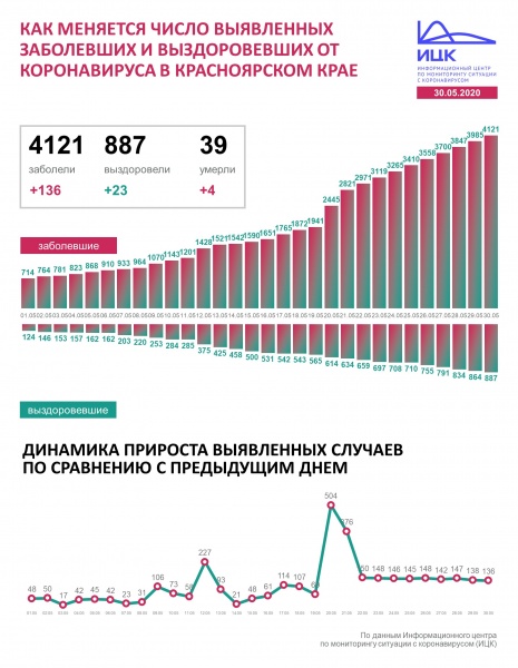 Динамика распространения коронавируса по Красноярскому краю на 30 мая