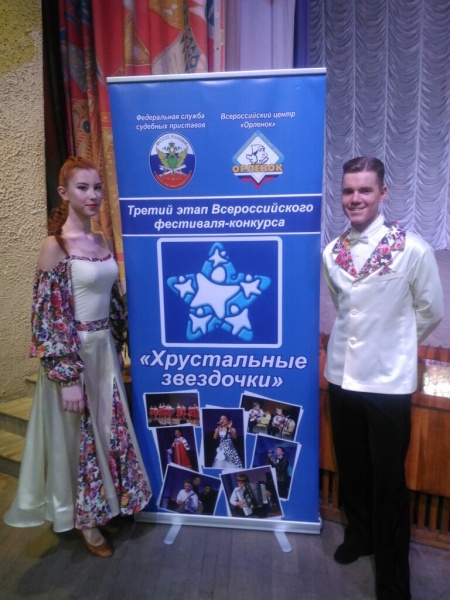 Напомним, конкурс «Хрустальные звездочки», утвержден директором Федеральной службы судебных приставов в РФ и проводится с целью поддержки и развития одаренных и талантливых детей сотрудников правоохранительных органов. Дмитрий Овчаренко – (сын главного специалиста-эксперта правовой группы МО МВД России «Ачинский» Натальи Овчаренко и пенсионера МВД Юрия Овчаренко), и его партнерша Анастасия Тодорова уже не в первый раз принимают участие в конкурсах подобного рода и надо сказать, всегда успех на их стороне.