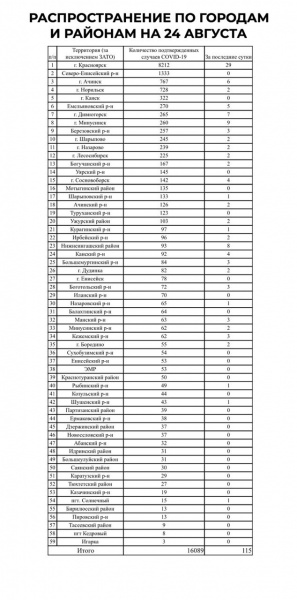 За последние сутки в Красноярском крае +115 больных коронавирусом. Общее число составило 16 089 случаев.