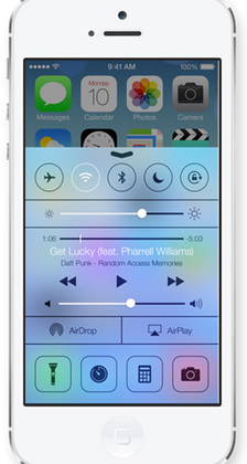 Основной экран iOS теперь умеет реагировать на наклоны аппарата и отображает соответствующую анимацию. В состав системы вошел «Центр управления» (Control Center) — он предоставляет доступ к наиболее популярным настройкам и включает и выключает фонарик.