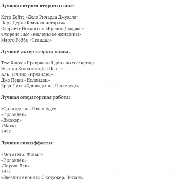 Американская академия кинематографических искусств и наук объявила номинантов на «Оскар». Список претендентов был оглашен в Лос-Анджелесе, трансляция проводилась на YouTube-канале премии.