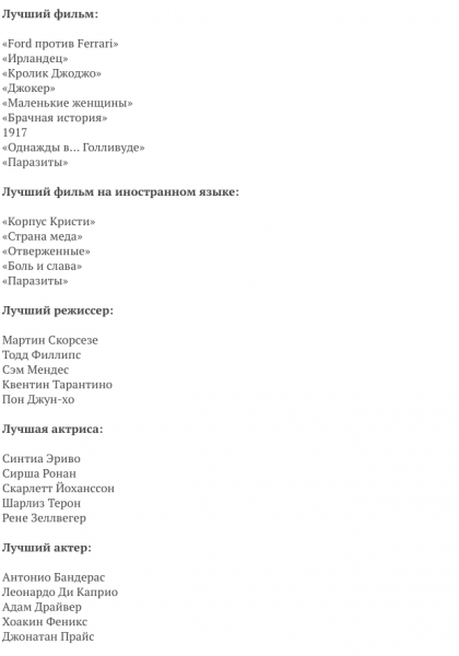 92-я церемония награждения состоится в Лос-Анджелесе 9 февраля.