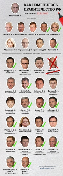 Во вторник Мишустин объявил новый состав правительства: в стране сменились министры культуры, спорта, просвещения, высшего образования и науки, новые руководители у министерств экономики и связи. Вместо десяти заместителей у нового премьера остались девять, один из них — Андрей Белоусов — первый заместитель председателя правительства.