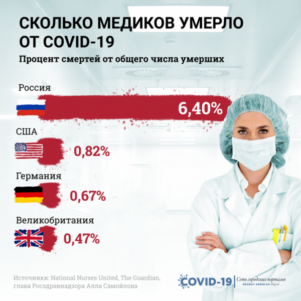 В «Списке памяти», который самостоятельно создали медики еще в начале эпидемии, сейчас немного меньше имен — 444. Данные о погибших врачах и медсестрах их коллеги собирают и лично проверяют, поэтому возможно, что часть информации им уже передана, но пока не опубликована.
