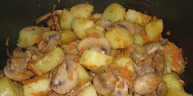 3. Картошка, тушенная с курицей и грибами в мультиварке