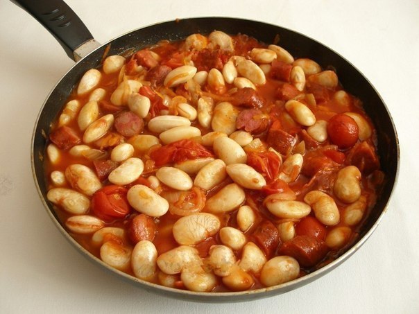 Белая фасоль в томатном соусе с "Охотничьими" колбасками