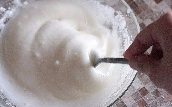 1. Взбиваем яйцо до увеличения объема примерно в 2 раза. Я взбивала вилкой, но затея эта физически довольно сложная. Масса в итоге должна получиться чуть пожиже, чем для приготовления безе.