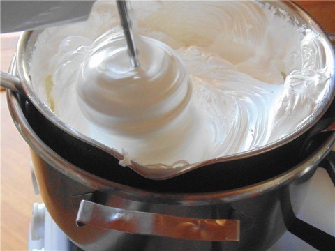 Взбивать крем ручным миксером, начиная с минимальной скорости, постепенно увеличивая скорость до максимума, в течении 15-17 минут.