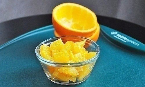 6. Помещаем все в кожицу от апельсина и подаем вместе с листьями салата и соусом.