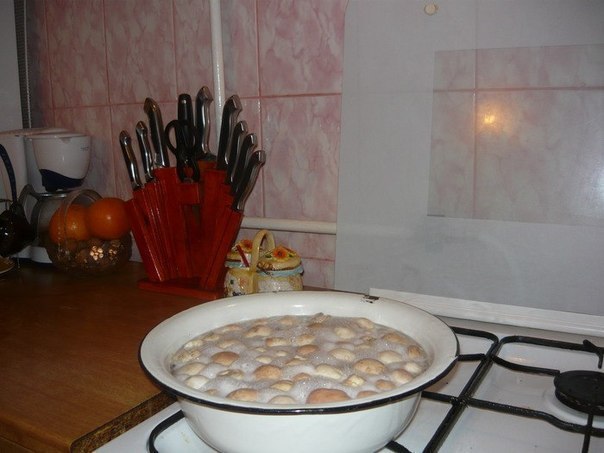 Отцедить и охладить,но чтобы были ещё тёплыми.. Добавить 2 зубчика чесночка, 2 ложки соли, 4 ложки уксуса, 1 ложку сахара, лавровый листик, перец душистый и немножко кипячёной холодной воды,чтобы чуть-чуть покрыло грибы (соли можно больше, на любителя).