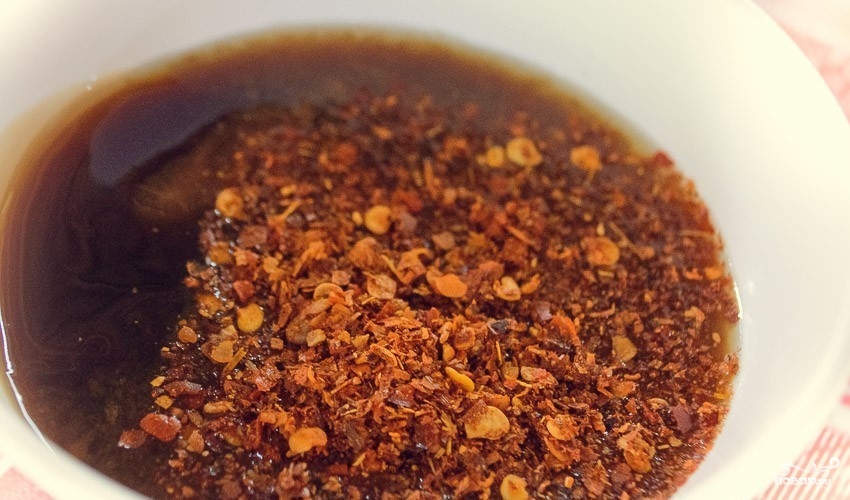 2. На маленьком огне на сковороде или в сотейнике обжарим орехи, потом добавим перец, кетчуп, сахар, соевый соус и уксус. Доводим до кипения и загустения, постоянно помешивая, чтобы сахар растворился, а перец отдал свой вкус. После этого "гущу" можно выбросить, а соус оставим чуть остыть.