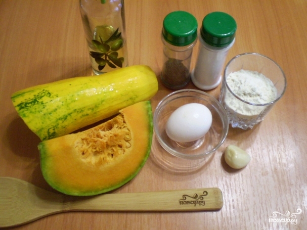 2.Кабачок и тыкву вымойте, очистите от кожуры и натрите на крупной терке. Чеснок пропустите через пресс.