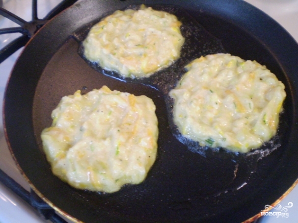 5.Разогрейте сковороду. Выкладывайте столовой ложкой тесто в горячее масло и жарьте до румяной корочки.