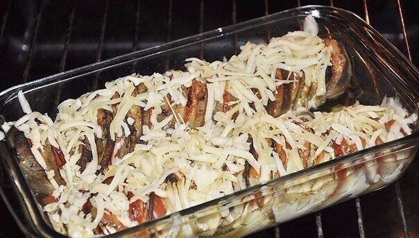 5. Посыпаем сыром и ещё 3 минуты в духовке.Готовое блюдо посыпать зеленью!