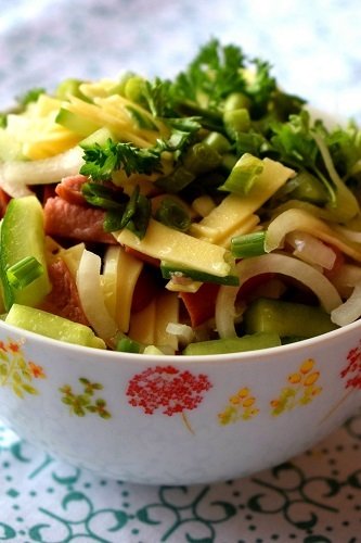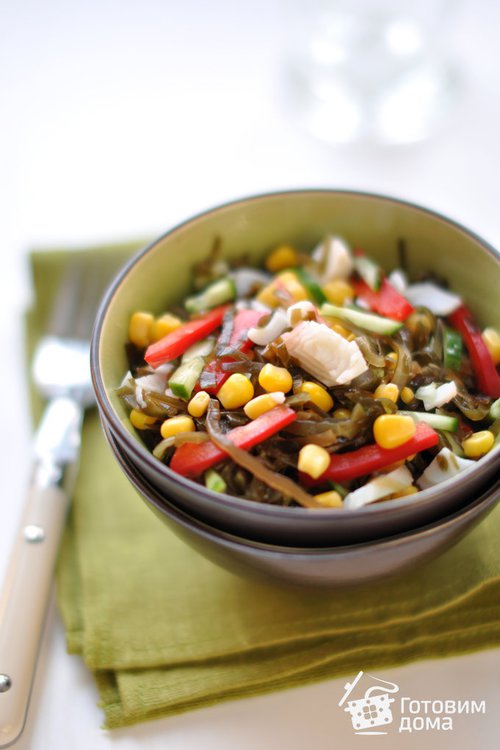 Салат из морской капусты с крабовыми палочками и кукурузой