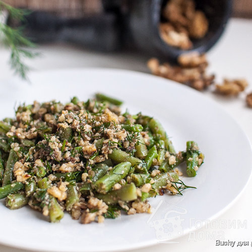 Салат из стручковой фасоли с грецкими орехами