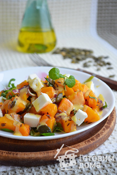 Теплый тыквенный салат с сыром