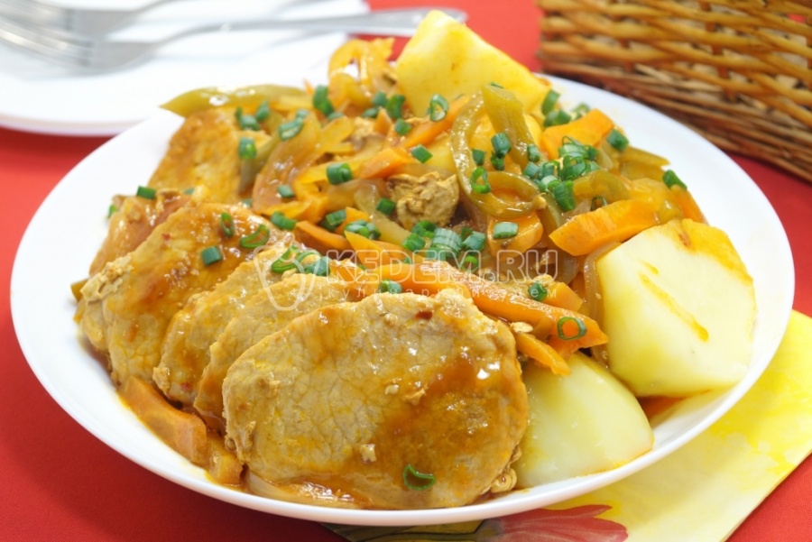 Нежное мясо тушеное с овощами