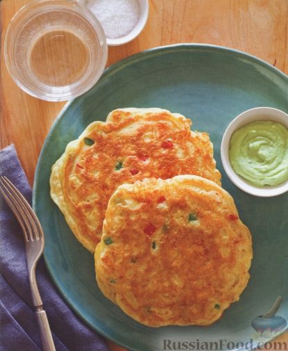 Оладьи с кукурузой, сыром, сладким и острым перцем. Готовятся несладкие оладьи на пахте, с добавлением овсяной муки.