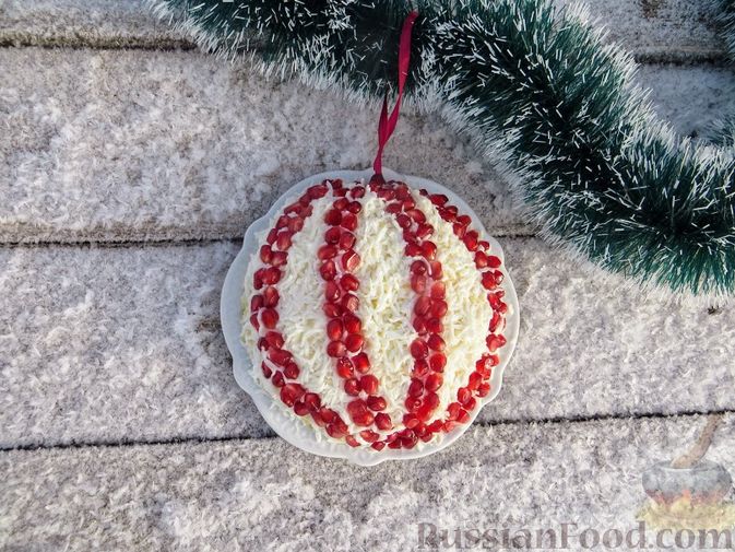 Вкусный слоеный салат "Тиффани" из курицы, с сыром и орехами, украсит и разнообразит праздничный стол. |