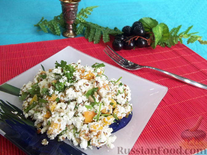 Творожный салат с зеленью и абрикосами
