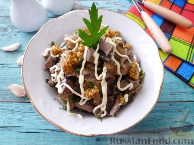Салат "Муравьиная горка" с языком и баклажаном