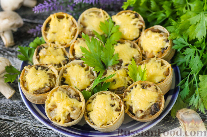 Тарталетки с курицей, грибами и сыром