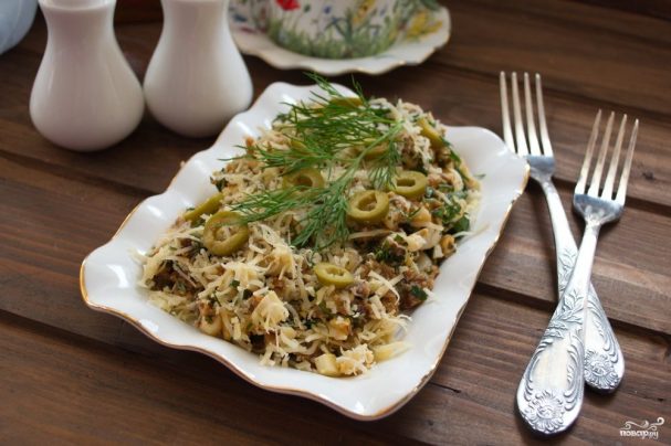 Салат с сайрой и сыром