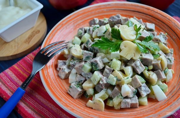Салат с говяжьим языком и грибами