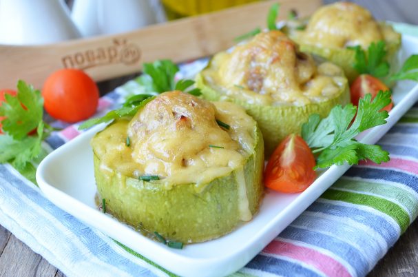 Кабачки, фаршированные индейкой