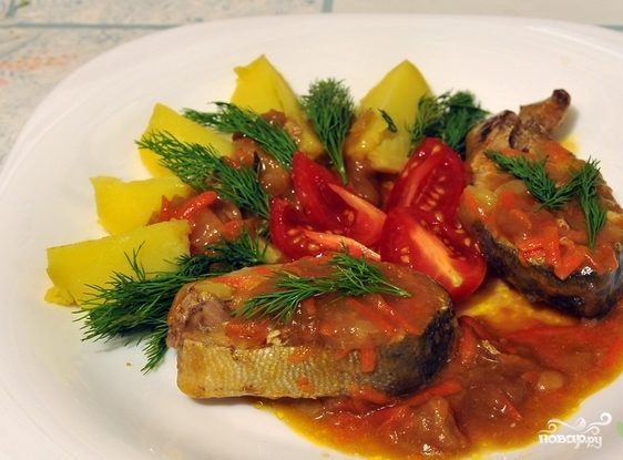 Горбуша, тушенная с овощами