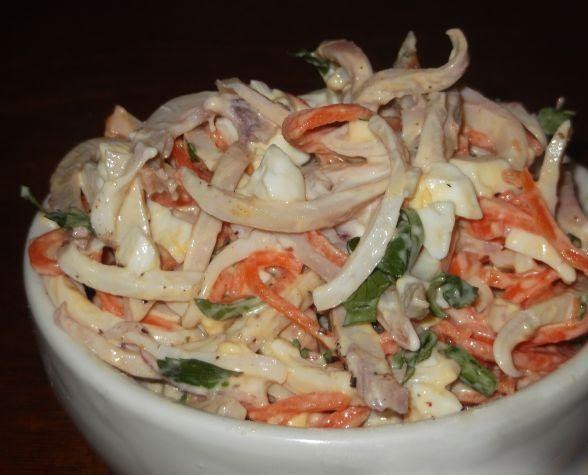 Салат с кальмаром, яйцом и корейской морковью