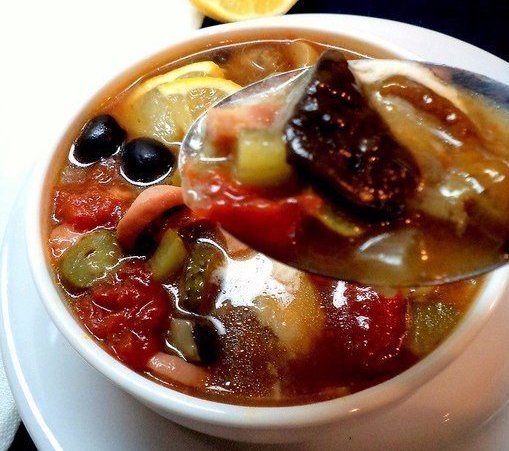 Солянка с куриными сердцами и опятами