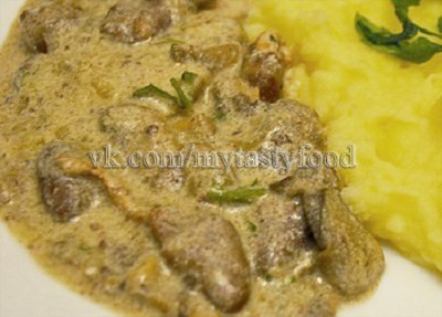 Куриные сердечки с грибами в сливочном соусе в мультиварке