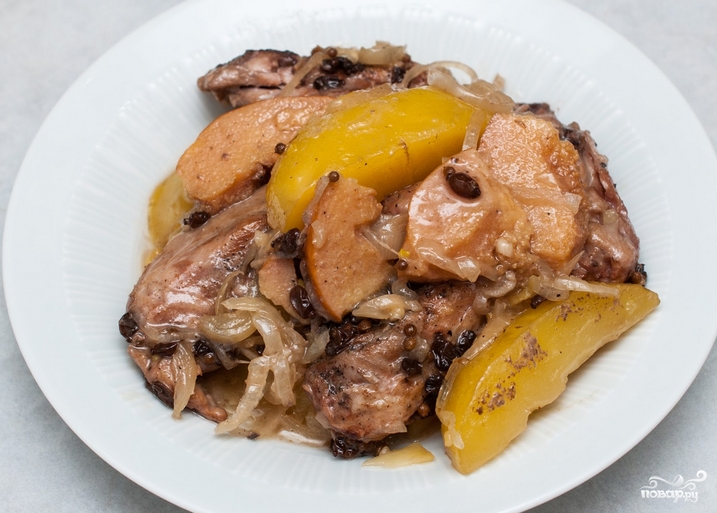 Курица и яблоки - это великолепное кулинарное сочетание, которое используют для приготовления разнообразных блюд повары по всему миру. Предлагаю тушить их вместе в курином бульоне со специями.