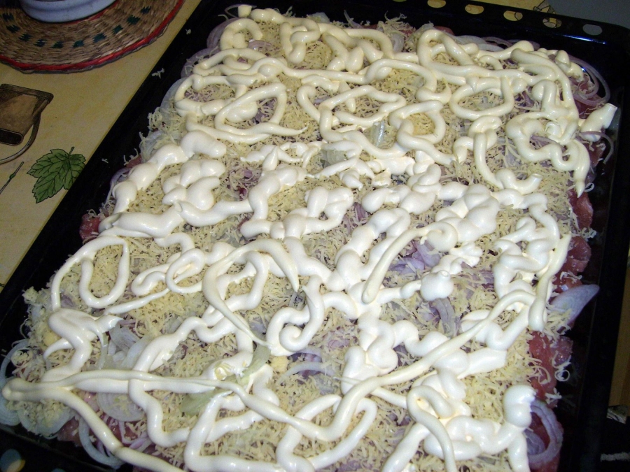 Ингредиенты: Свинина — 1500 Грамм Лук — 2-3 Штук Майонез — 200 Грамм Сыр — 200 Грамм Соль и специи — По вкусу 1. Почему это блюдо называется отбивная по-царски? Все дело в том, что мясо готовится несколько необычным способом, а результат приготовленного кулинарного шедевра удивит даже искушенных мясоедов и гурманов. 2. Нарезаем свинину на части, толщиной около 1 сантиметра. После этого отбиваем тщательно мясо, солим и приправляем его по вкусу. Я обычно использую смесь перцев добавляю чили или паприку. 3. Выкладываем отбивные, а сверху смазываем майонезом. Следующий слой - лук кольцами и снова майонез. Завершающий аккорд - тертый сыр на крупную терку. Теперь можно отправлять форму в разогретую до 200 градусов духовку. Запекаем отбивные около 25 минут при температуре 180 градусов. 4. Некоторые добавляют еще нарезанный кольцами картофель - но это дело вкуса. Я готовлю мясо под сырно-луковой корочкой и оно получается великолепным! К таким отбивным подойдут соления или свежие овощи, а также острый или сливочный соус. Приятного аппетита! |