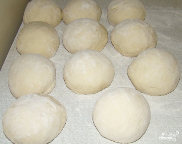 2. Разделите тесто на одинаковые кусочки, сказав каждый из них в шарик. В зависимости от желаемого размера и объема сковороды их количество может быть разным.