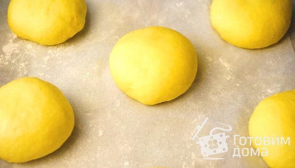 6. Булочки выложить на противень, выстеленный пергаментом, и снова оставить на расстойку на 30-40 мин. Я обычно ставлю в духовку заранее прогретую до 50 градусов, а потом выключенную.